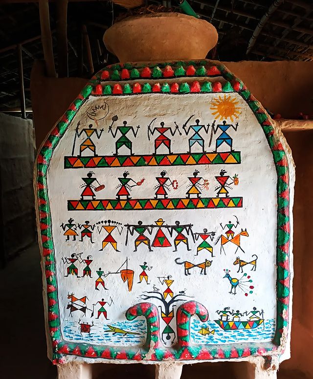अष्टमीको दिन विहान उत्तरतिरको भागमा भित्तामा चित्र बनाइन्छ । अष्टमीमा बनाइने ती हरेक चित्रको महत्व फरक फरक हुन्छ । सवैभन्दा माथि ४ वटा मान्छेको टाउको बनाइएको हुन्छ । जसलाई थारु भाषामा बरमुन्हा भन्छन् । बरमुन्हा रामायणको रावणको थारु नाम हो । भित्तामा बनाइने तस्वीरहरु फ्रेममा हुन्छ । फ्रेम आकारको छेउछेउमा त्रिभुज आकारको रगीविरंगी बुट्टा भरिएको हुन्छ । एक लाइनमा द्रौपदी बनाइएको हुन्छ भने अर्को एक लाइनमा पाँच पाण्डवहरुको तस्वीर हुन्छ । पाण्डव थारु समुदायको सवैभन्दा ठूलो देवता भएकाले जन्माष्टमीमा पनि पाण्डवको तस्वीर हुनु पर्ने थारु बुद्धिजीवी छोटीलाल थारुले बताए । उनीहरुको तस्वीर कसैले छाता ओढेको, कसैले मादल बोकेको, कसैले नाचेको तस्वीर बनाइएको हुन्छ । एउटा डोलीको चित्र पनि हुन्छ । उक्त डोलीमा पहिले द्रौपदीलाई भित्र्याइएको भन्ने भनाई थारु बुद्धिजीविहरुको पाइन्छ । यस्तै हलोजुवा पनि बनाइएको हुन्छ ।