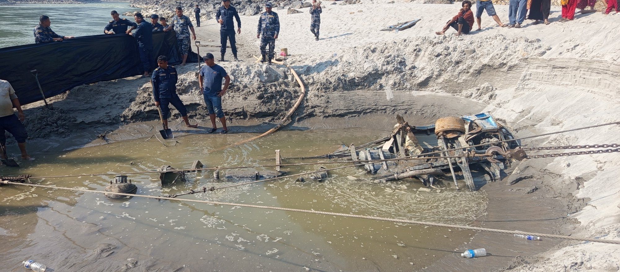 माछा मार्ने क्रममा जाल अड्किएपछि स्थानीयले खोतलेर हेर्दा बसजस्तो देखेपछि प्रहरीलाई खबर गरेका थिए । त्यसपछि प्रहरीले बसको पहिचान गरी अवशेष निकाल्ने प्रयासलाई निरन्तर जारी राखेकोे छ । नेपाल प्रहरी र शसत्र प्रहरीको टोली निरन्तर रुपमा लागे पनि बसको अवशेष निकाल्न सहज नभएको प्रहरीले बताएको छ ।
