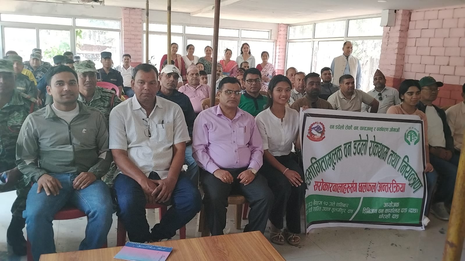 साथै सबै सरोकारवाला निकायले यस विषयमा गम्भीरता अपनाउँदै सक्रिय भूमिका निर्वाह गर्नुपर्ने उनीहरुले जोड दिएका थिए ।सो अवसरमा श्री गणेश सामुदायिक वन उपभोक्ता समूहका अध्यक्ष डिल्लीबहादुर भण्डारी, सव डिभिजन वन कार्यालय तुलसीपुरका वन अधिकृत खिमबहादुर केसीलगायतले बोल्नु भएको थियो ।कार्यक्रम वरिष्ठ वन अधिकृत ओमबहादुर बस्नेतको स्वागत मन्तव्यबाट सुरु भएको थियो भने सहजीकरण रेन्जर प्रकाश ढकालले गर्नुभएको थियो।