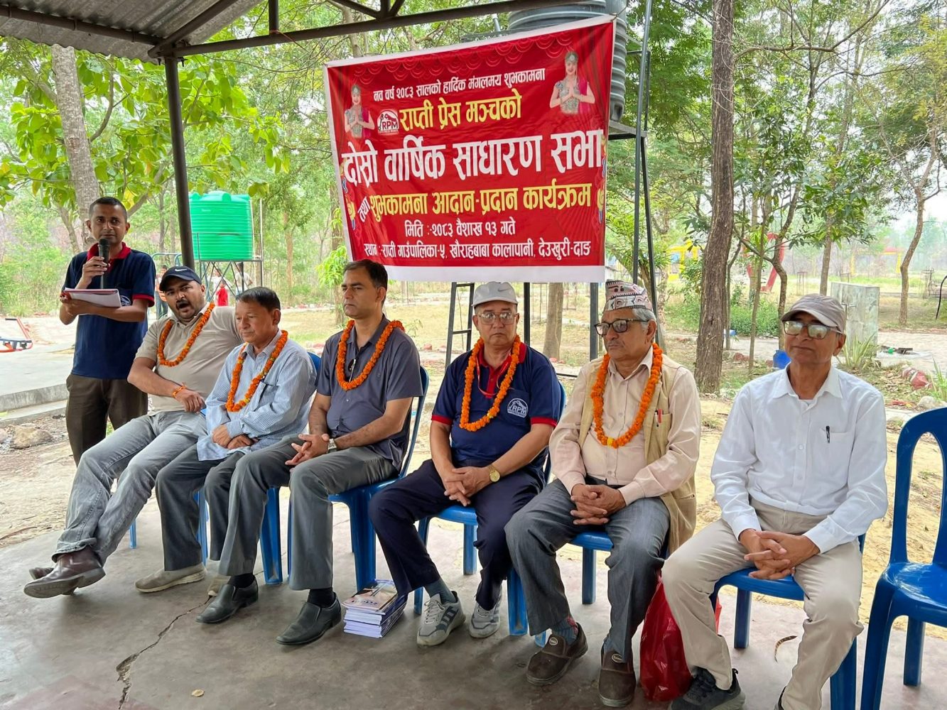 दाङ, १३ वैशाख । नेपाल पत्रकार महासंघ दाङका अध्यक्ष सन्तोष सुवेदीले सञ्चार माध्यममाथि दबाब सिर्जना गर्ने सरकारी कदमहरू तत्काल सच्याउन माग गर्नुभएको छ । राप्ती प्रेस मञ्चको दोस्रो वार्षिक साधारणसभा तथा नव वर्ष २०८३ को अवसरमा राप्ती गाउँपालिका–५ कालापानी स्थित खैराहामा आयोजित शुभकामना आदानप्रदान कार्यक्रमलाई सम्बोधन गर्दै उहाँले प्रेस स्वतन्त्रतामाथि हुने कुनै पनि हस्तक्षेप लोकतन्त्रका लागि गम्भीर खतरा हुने चेतावनी दिनुभयो ।