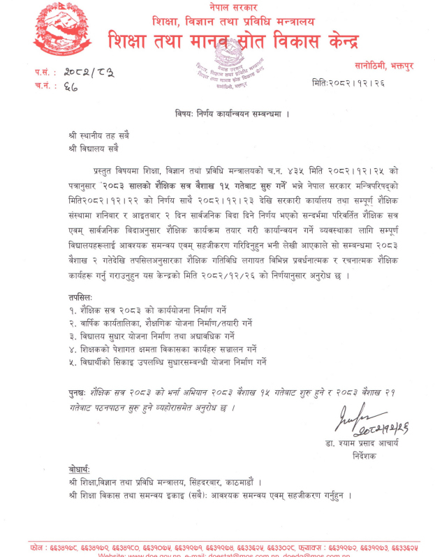 शिक्षा तथा मानव स्रोत विकास केन्द्रको भर्ना सम्बन्धी सुचना