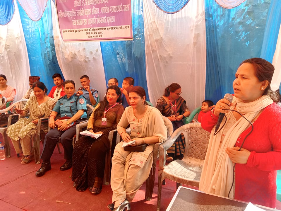 ओरेक दाङकी प्रमुख इश्वरी थापाको अध्यक्षता एवं महिला रक्षक संजाल दाङकी संस्थापक अध्यक्ष लक्ष्मी आचार्यको प्रमुख आथित्यतामा कार्यक्रम भएको थियो ।